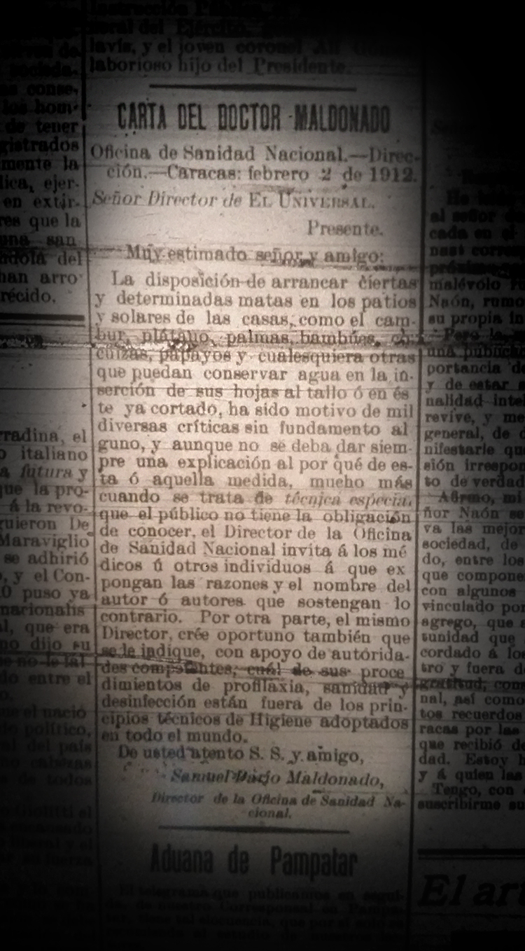 “Por Decreto Ejecutivo recientemente dictado, se creó una Oficina de Sanidad Nacional, para dirigir cuanto se relaciona en Venezuela con el perfecto estado de la salubridad pública… “El Gobierno Nacional ha elegido para la Dirección de la Oficina de Sanidad Nacional, a nuestro distinguido amigo y asiduo colaborador el señor Doctor Samuel Darío Maldonado, quien, por sus sólidos conocimientos y reconocida actividad, podrá rendir grandes servicios en el importante ramo que se le confía…”.